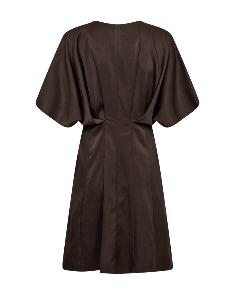 Skjønn kjole med fine detaljer, feminint snitt i tung klassisk sateng.