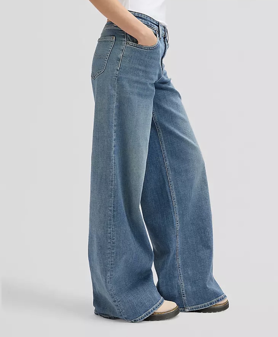 En baggy jeans, med ekstra vide bein. Den går til midt på livet, og oppleves som litt lengre enn en vanlig 33 lengde.