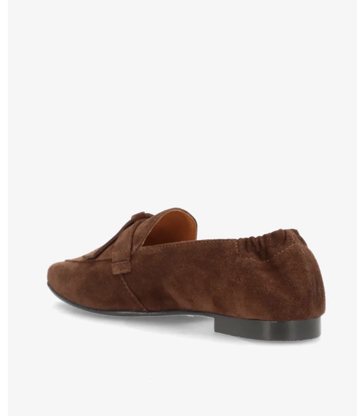 Elegant loafer i mørkebrunt semsket skinn, designet med fokus på både komfort og stil. Den spisse fronten gir et feminint uttrykk, mens elastisk hælkant sørger for en fleksibel og behagelig passform gjennom dagen. Skoen passer like godt til jeans som til kjoler og dressbukser. En tidløs modell med vanlig passform, laget i mykt semsket skinn.