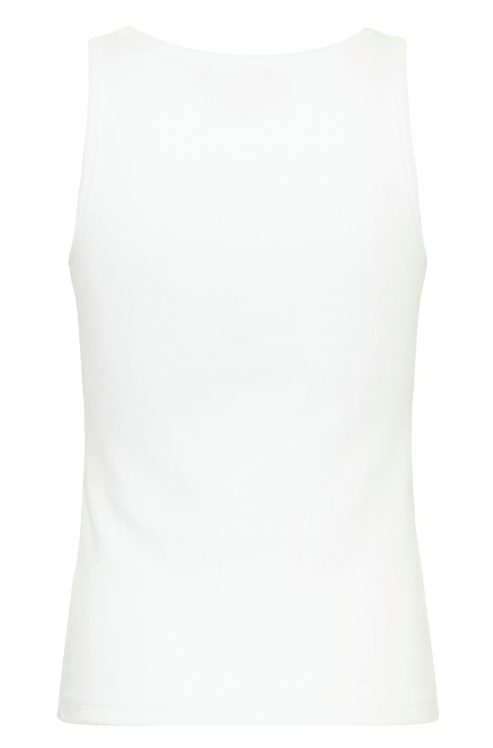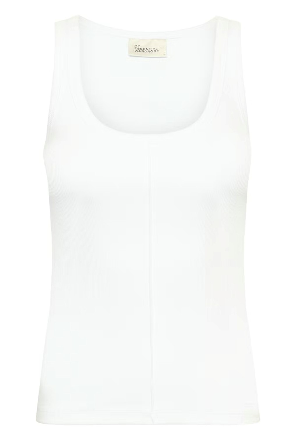 Ribbestrikket singlet med synlig vertikal søm foran. Brede stropper og ribbestrikket struktur.