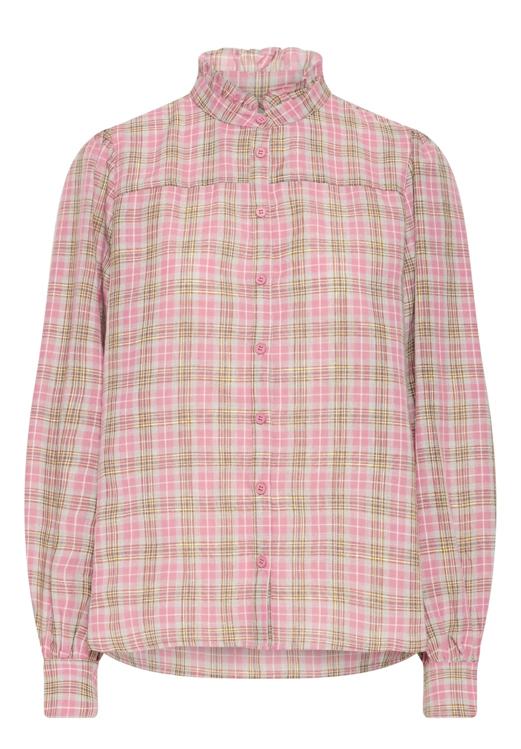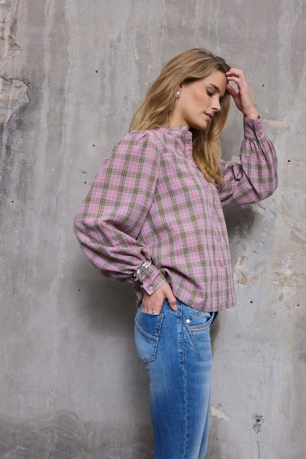 En nydelig bluse fra PULZ i 100% Bomull, feminin og løs i modellen, litt vide ermer, liten puff og i halsen har den volang detaljer.