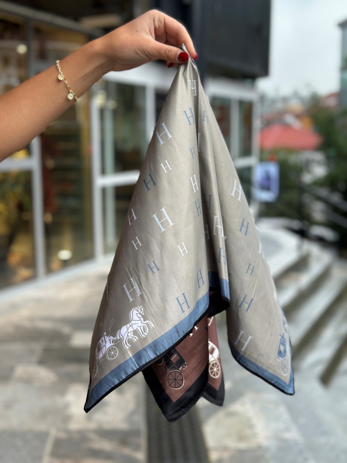 Tosidig skjerf med H på.