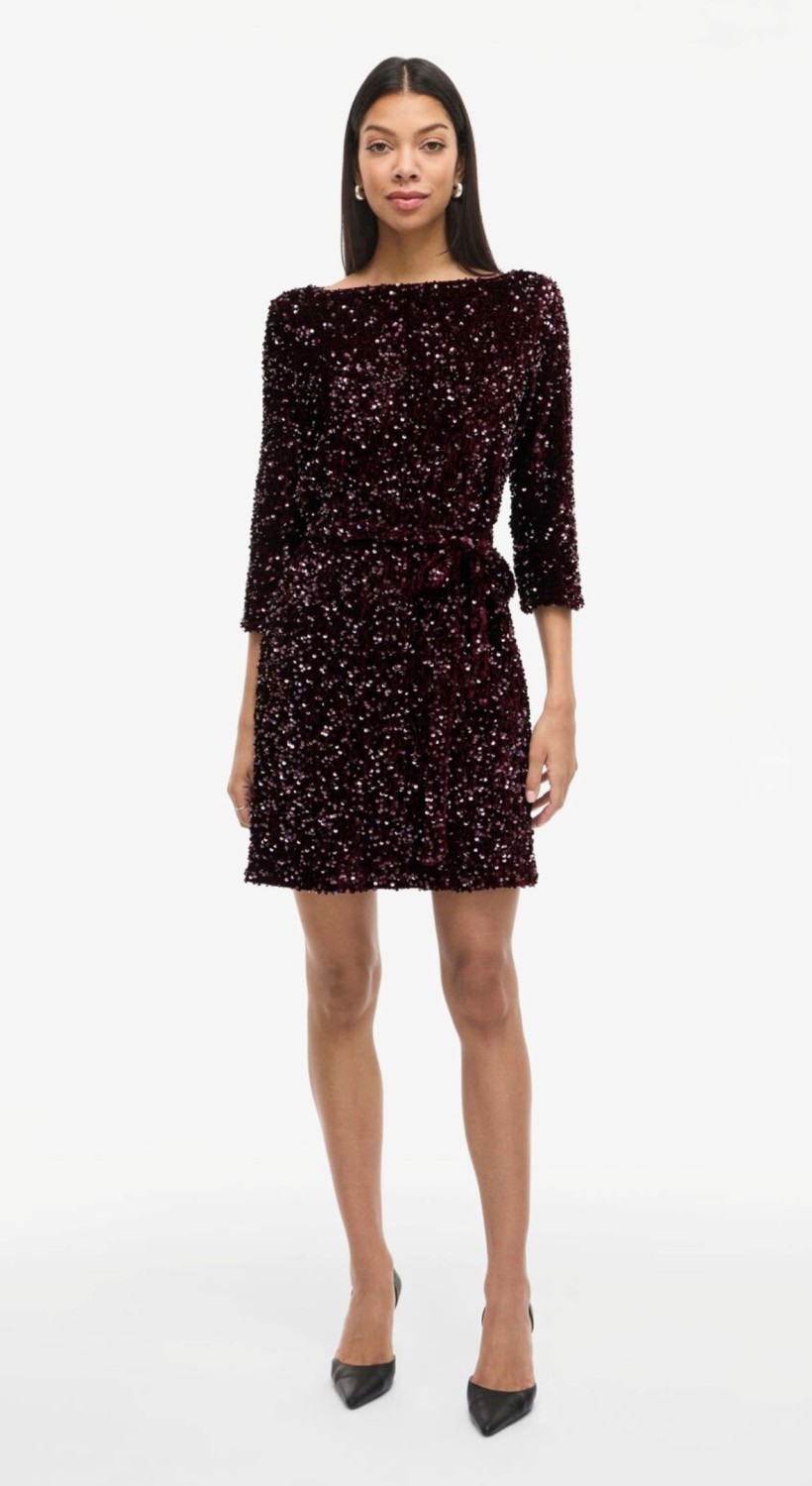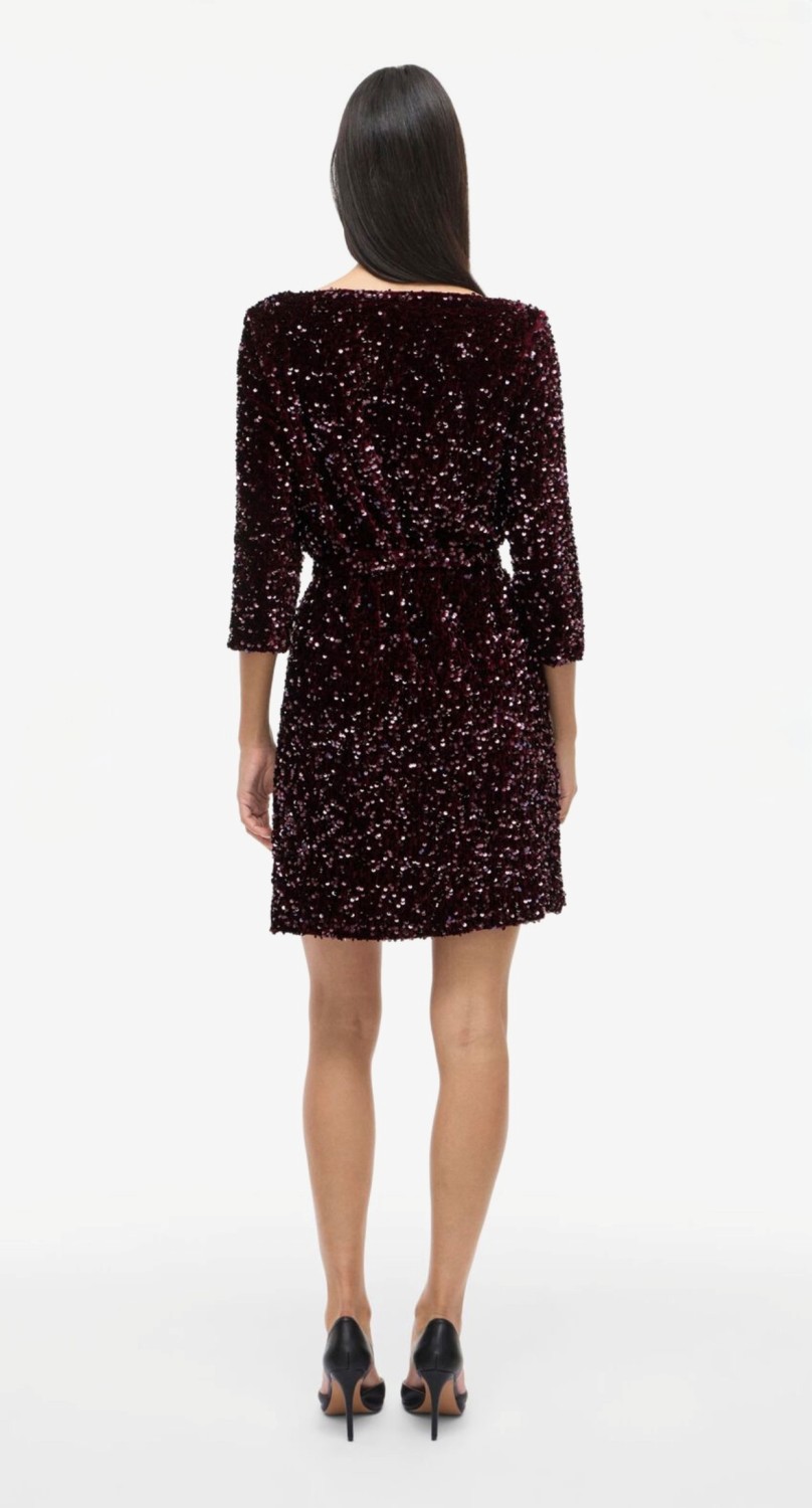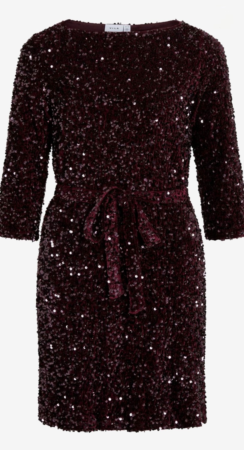 Vifaith boatneck 3/4 dress/r paljetter burgunder