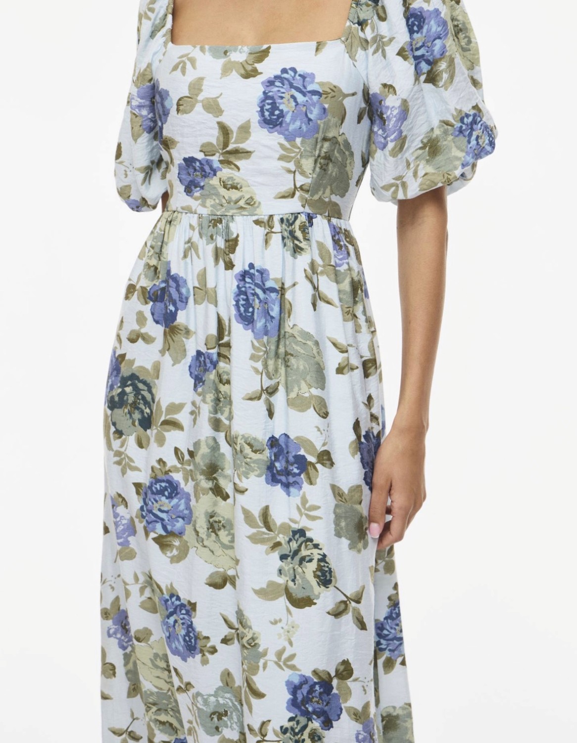 En helt nydelig ankel lang kjole med firkantet skjæring, strikk bak i ryggen, pufferm, foret og printet er utrolig fint.