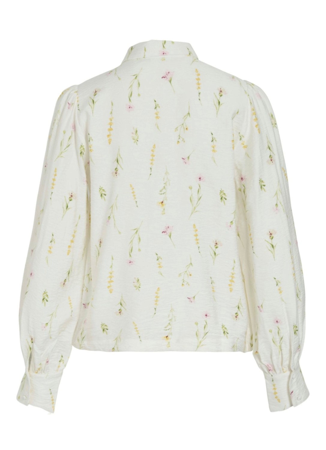 Søt blomster bluse med trekte knapper, liten puff og krage.