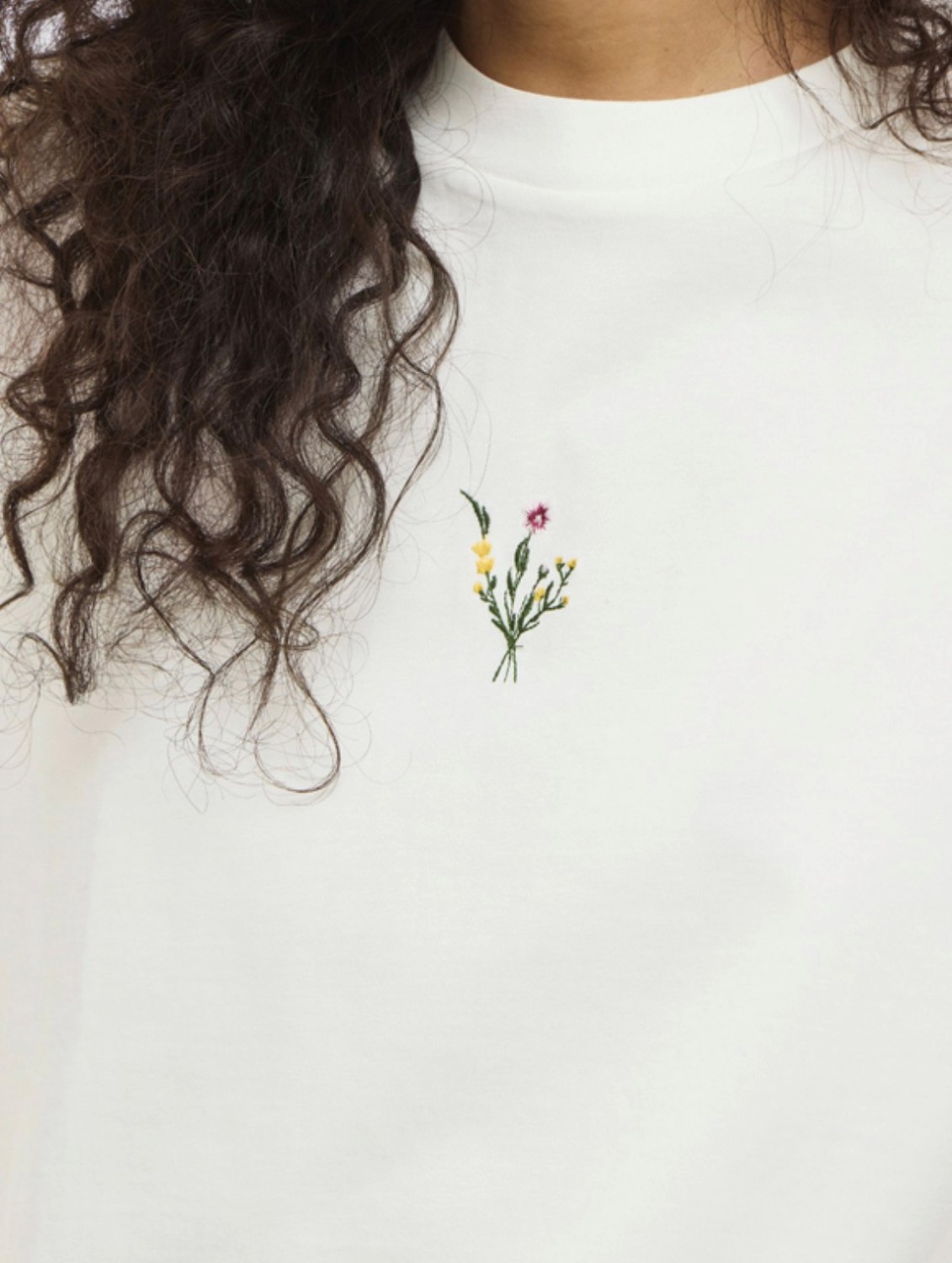 VIMONIE FLORAL EMB brodert foran s/s hvit